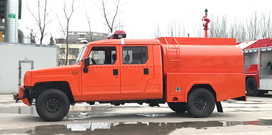 四驅版本的我們主推北汽森林消防車、由北汽原廠四驅越野底盤打造而成、可分別定制單排座與雙排座駕駛室,滿足不同的消防需求,上裝罐體可分為1.5噸-2噸區間選擇,搭載的是155馬力的玉柴動力發動機,各種路況不在話下。配備的是小型消防泵,滿足有效射程35米左右,見下圖: