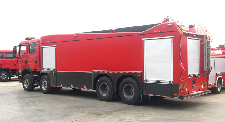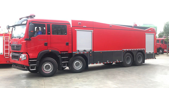 除了五十鈴消防車底盤與東風消防車底盤、以及小眾的福田、上汽紅巖、解放、北汽、陜汽底盤等等;國內(nèi)越來越多的消防車改裝上裝企業(yè)采用中國重汽汕德卡、HOWO-T系底盤,中國重汽產(chǎn)品在消防展上逐步嶄露頭角,展示了中國重汽作為“進口替代”者的實力。特別是專職消防隊與企業(yè)消防隊選擇的多起來了。是的重汽消防車越來越暢銷;今天我們?yōu)榇蠹医榻B一款采購重汽T5G車身全新打造的一款前四后八泡沫消防車。
